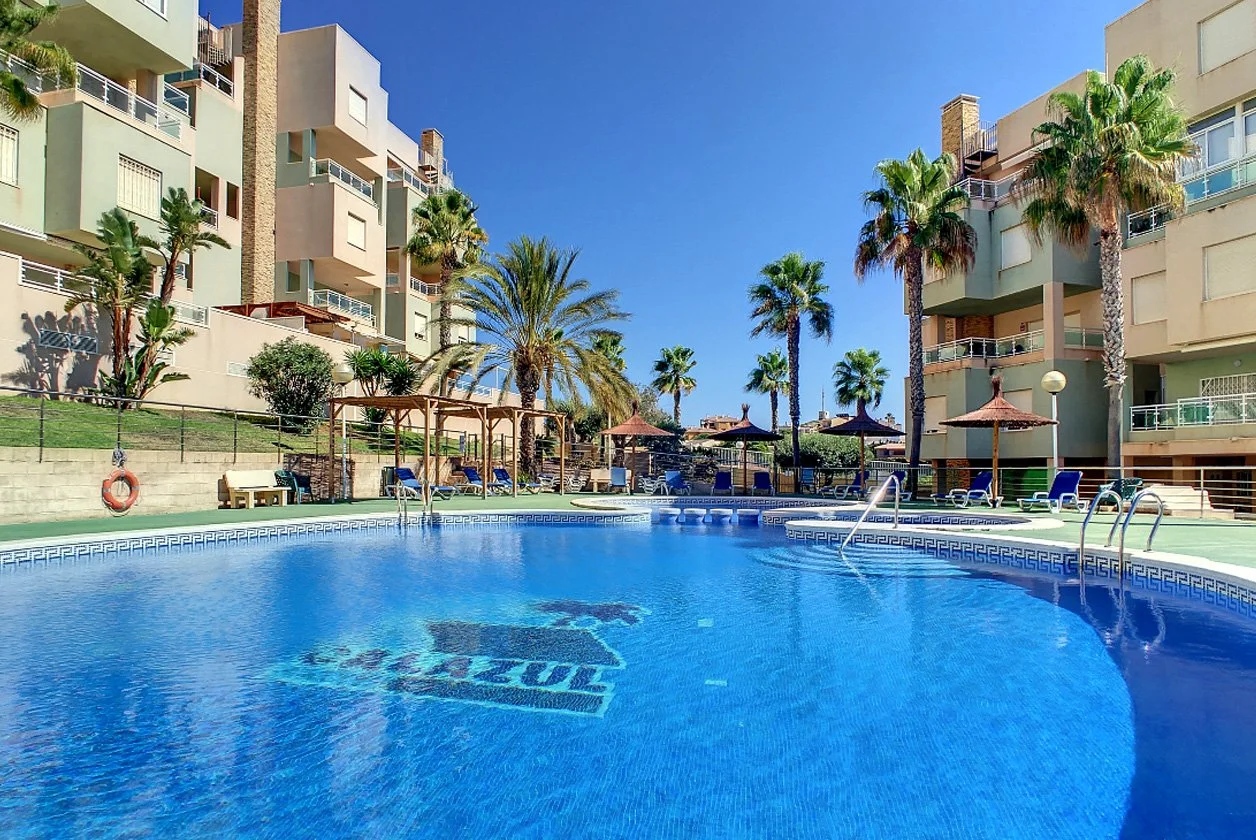This spacious apartment is situated at the Cala Azul complex in the Cala Flores area of Cabo de Palos. The complex has an outdoor communal pool with a children's pool and is walking distance to the beach and the large outdoor Sunday market. Cabo de Palos has a great selection of supermarkets, bars and restaurants. It is also close to many activities like go karting track, horse riding, scuba diving, golf and all water sports.